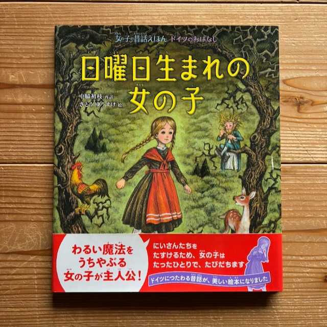 日曜日生まれの女の子 再話|中脇初枝 絵|さとうゆうすけ 偕成社 いろんな女の子が主人公の「女の子の昔話えほんシリーズ」 中脇初枝さんによる再話にさとうゆうすけさんの絵が、子どもの頃に空想に耽った童話の世界そのものです。 魔女の誘いにのって動物に姿を変えられてしまった兄さんたちをかしこい妹が助けに行きます。大丈夫、なんといっても日曜日生まれの女の子ですから。