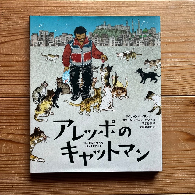アレッポのキャットマン 著|アイリーン・レイサム、カリーム・シャムシ・バシャ 絵|清水裕子 訳|安田菜津紀 あかね書房 初版刊行年 2021年5月31日 シリアで戦争が始まる前、アレッポは美しい街で人々の愛情に溢れていました。 瓦礫の山と化したアレッポにはたくさんの置いていかれた猫たちがいます。 アラーは救急車の運転手を続けながら、猫たちの世話を始めました。 その活動は多くの人々の共感を呼び、アレッポのキャットマンと呼ばれるようになりました。 街を離れた人も、遠くから見守る人も小さな命をなんとか救いたいと思っています。 戦争なんかやめたらいいのに。
