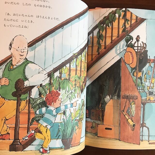ダイナミックな、おじいちゃんとの外遊びをファンタジックに描きます。