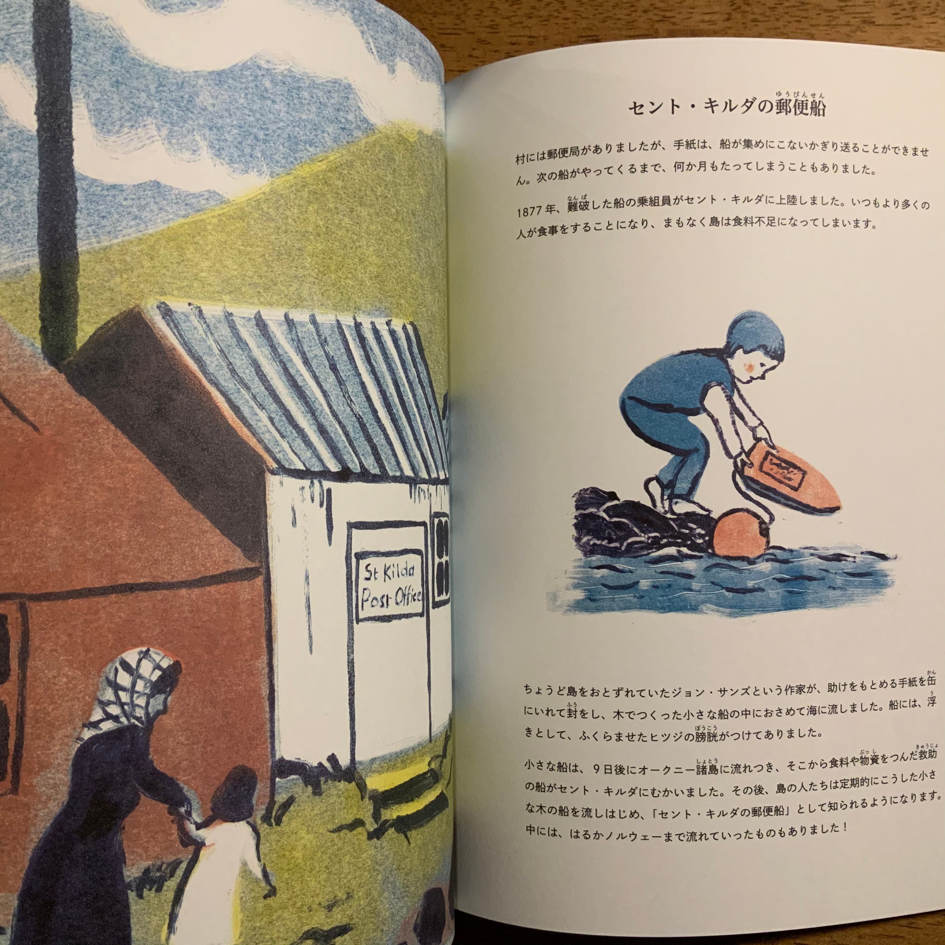 この島で生まれ、5歳で全ての島民と共に離れなければならなかったノーマン・ジョンの話を元に島での暮らし、状況の変化、島との別れ、移住先での暮らしまで丹念に追った美しい絵本。
